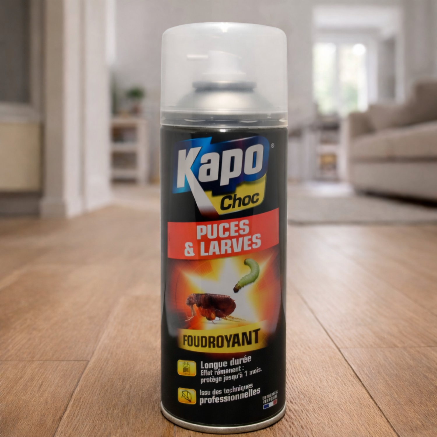 Le spray "Puces et larves" est un insecticide foudroyant prêt à l’emploi, conçu pour éliminer les puces adultes, larves et œufs dans vos intérieurs. Grâce à sa formule larvicide et insecticide, il stoppe le développement des larves après éclosion et réduit efficacement la prolifération.