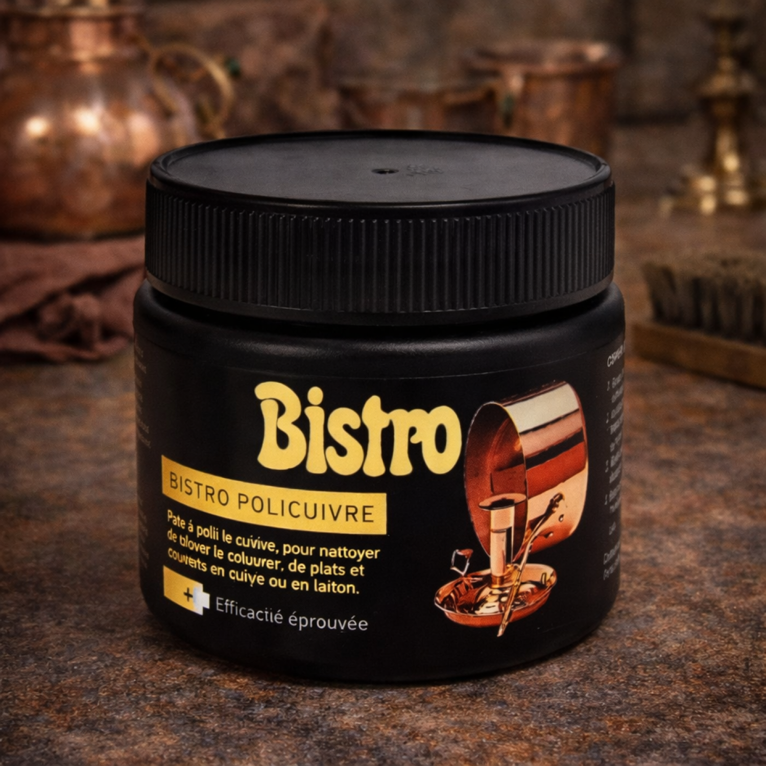 Bistro Policuivre est un nettoyant performant conçu pour restaurer et magnifier l’éclat des objets et surfaces en cuivre. Sa formule active dissout efficacement les oxydations, ternissures et résidus tout en respectant la matière. Idéal pour l’entretien de vos ustensiles, objets décoratifs, éléments anciens ou pièces métalliques en cuivre, il redonne une brillance profonde et durable. Facile à utiliser, il offre un nettoyage précis et efficace pour un cuivre propre, éclatant et parfaitement entretenu.