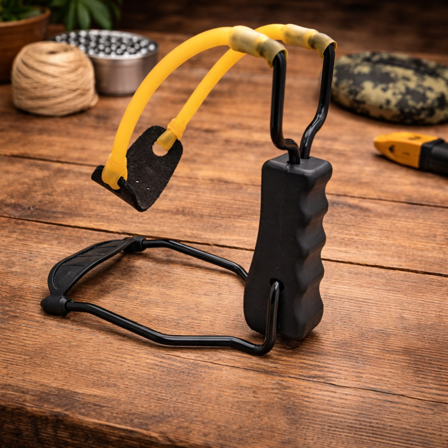 Lance-pierre avec repose-poignet pour plus de stabilité et de puissance. Idéal pour le tir de précision, la chasse ou le loisir. Poignée ergonomique, structure en métal solide et élastique haute tension. Confort d’utilisation et performance améliorée à chaque tir.