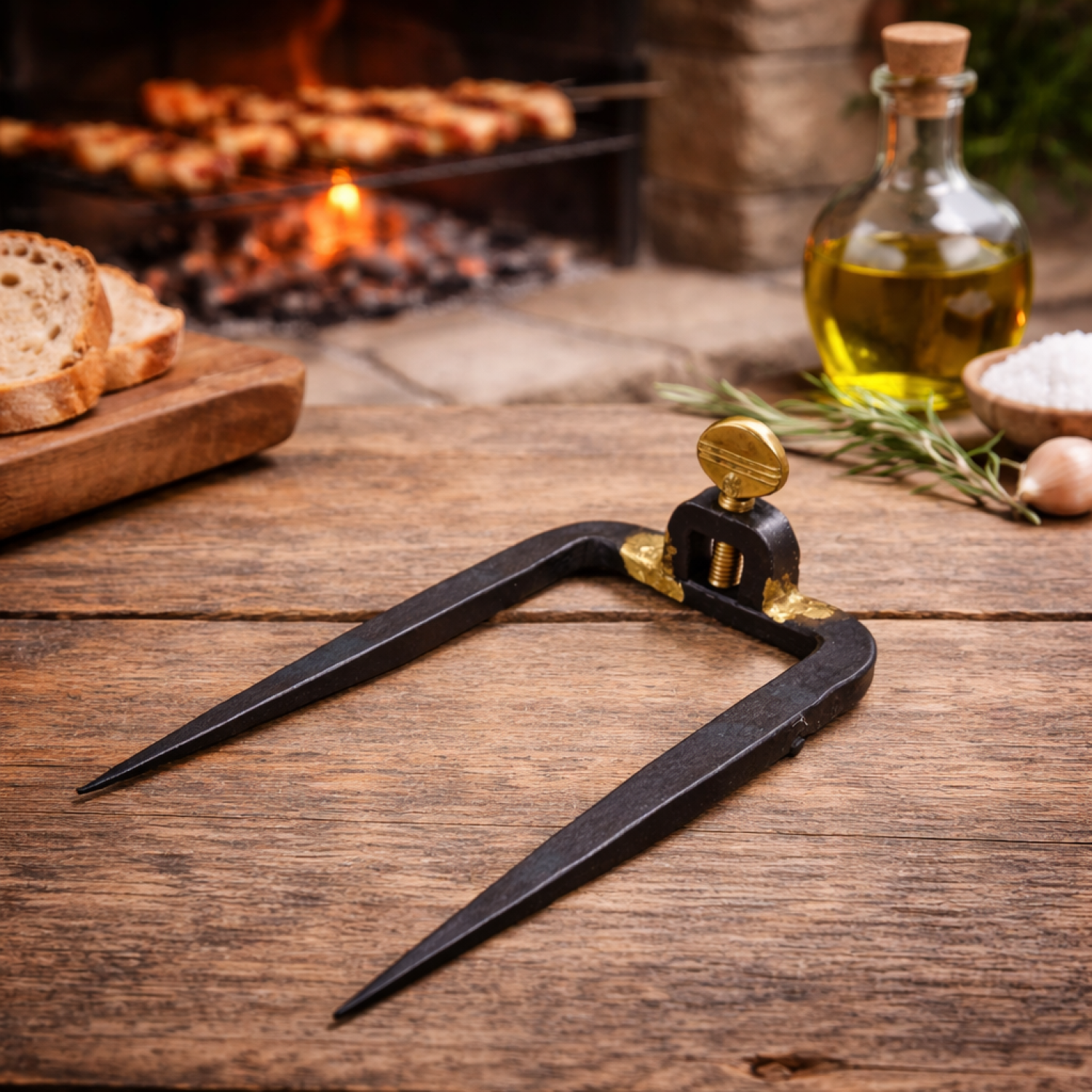 Ce pique double à broche en fer forgé est conçu pour assurer un maintien stable et sécurisé de vos broches lors des cuissons au feu de bois, barbecue ou méchoui. Sa fabrication robuste en fer forgé garantit une excellente résistance à la chaleur et à l’usage intensif. Grâce à ses deux pointes, il s’ancre fermement dans le sol ou le support pour maintenir parfaitement la broche en place pendant la cuisson. Idéal pour les rôtisseries traditionnelles, il convient aussi bien aux particuliers qu’aux professionnels recherchant un accessoire fiable et durable pour leurs cuissons conviviales en extérieur.