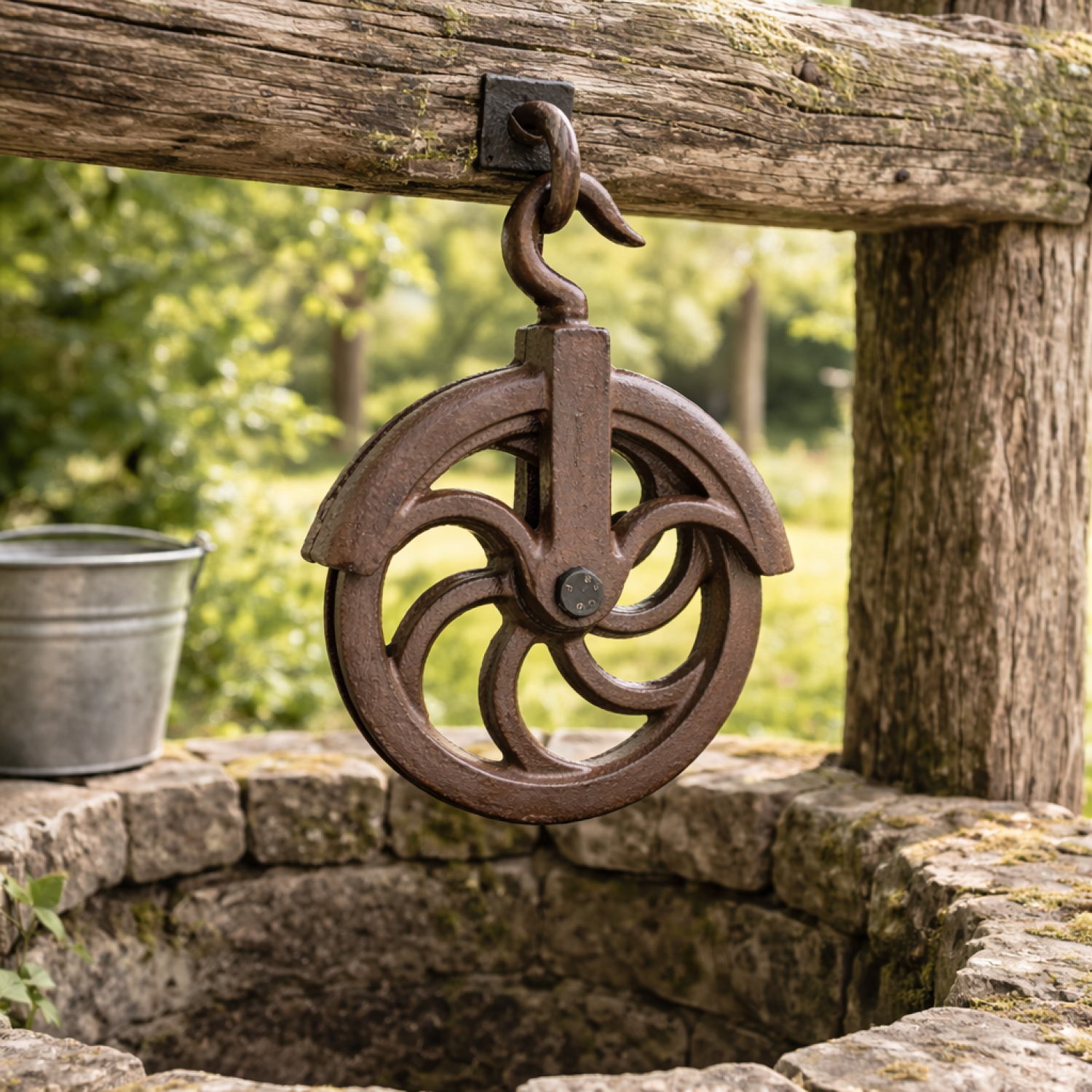 La poulie pour puits en fonte est un accessoire robuste et traditionnel, idéal pour faciliter le tirage de l'eau ou le levage de charges. Conçue en fonte, elle offre une excellente résistance à l'usure et aux conditions extérieures. Son design ajouré à roue large assure une bonne fluidité de rotation et un guidage efficace de la corde. Équipée d'un crochet de suspension rotatif, elle est facile à installer et parfaitement adaptée aux puits, jardins ou usages décoratifs de style ancien, la force est excercée sur le crochet et la gorge de la polie est ronde.
