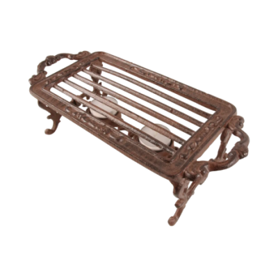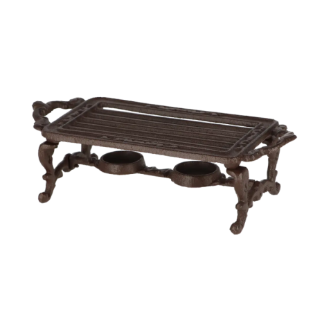 Élégant et fonctionnel, ce réchaud chauffe-plat en fonte est idéal pour maintenir vos plats et boissons au chaud avec raffinement. Son design rectangulaire travaillé, ses pieds décoratifs et ses poignées intégrées lui confèrent un style à la fois authentique et haut de gamme.