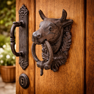 Crémone en fonte de couleur grise pour menuiserie bois.